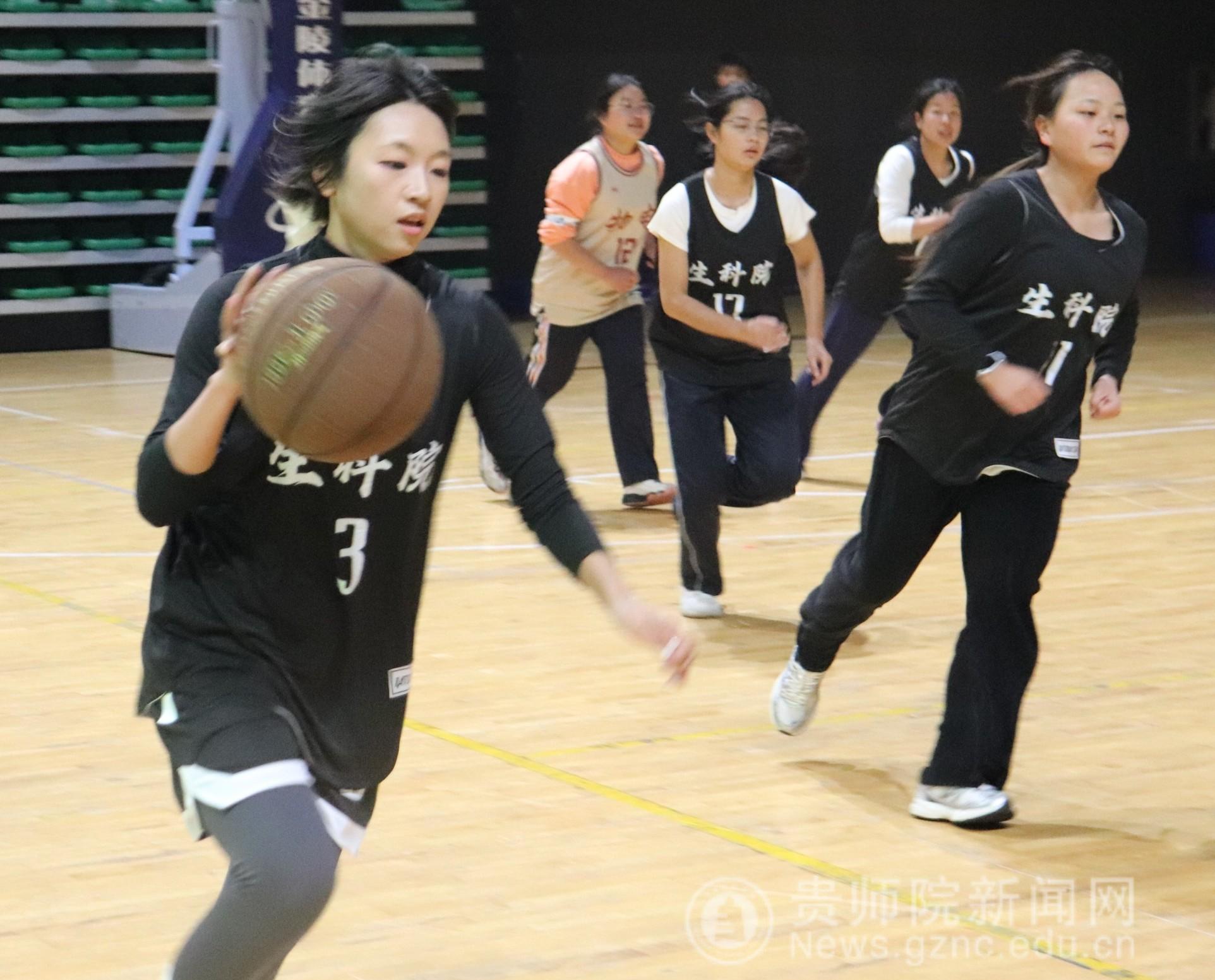 本网讯 12月2日,贵州师范学院校园篮球场热血沸腾,生物科学学院女子篮球队和物理与电子科学学院女子篮球队在此展开校篮球联赛半决赛的巅峰对决。双方队员以精湛球技、顽强斗志上演了一场精彩绝伦的赛事,场下拉拉队的呐喊助威更是将现场氛围推向高潮。