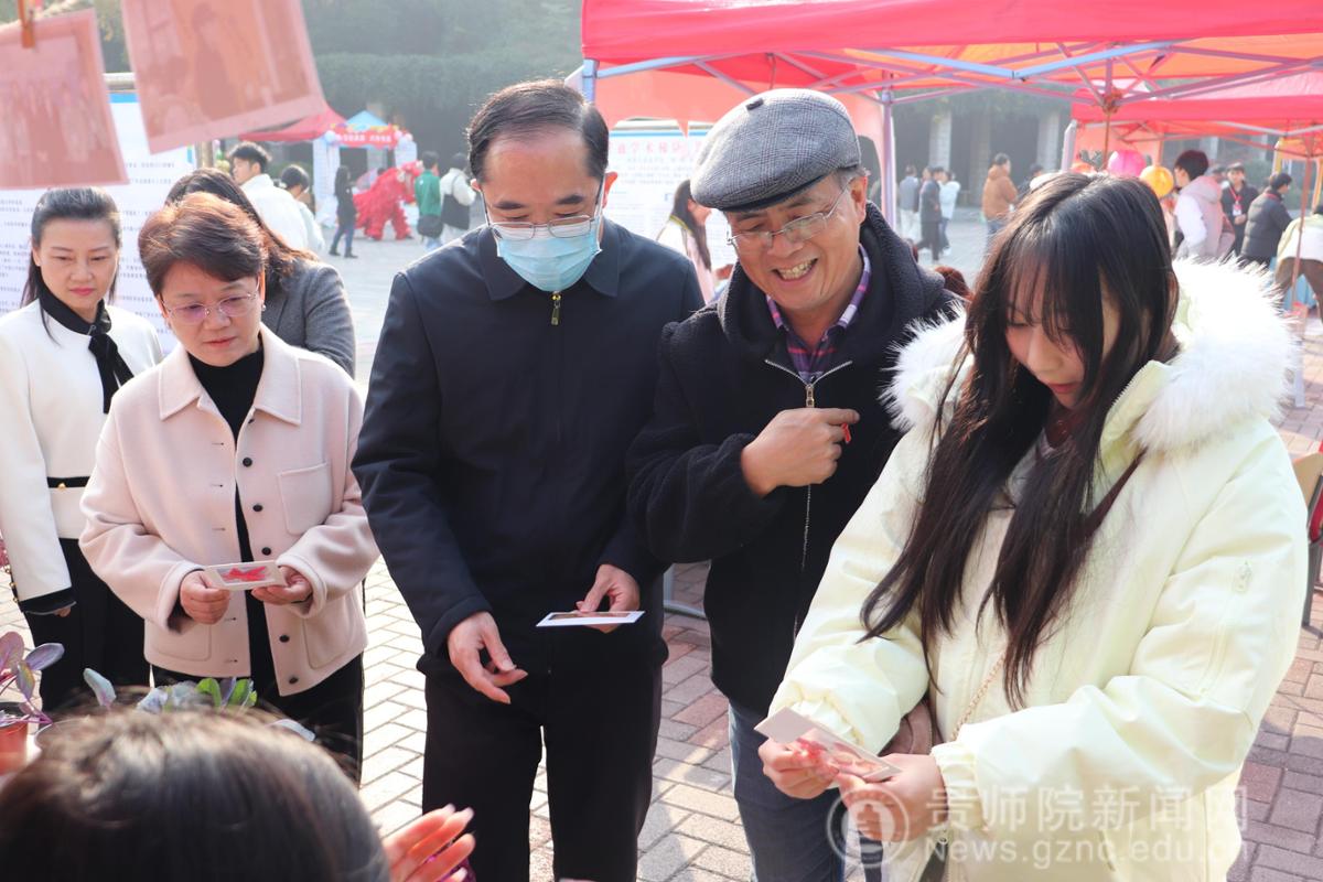 本网讯 12月1日,贵州师范学院第二届“一站式”学生社区文化节举办,生物科学学院打造的“生芽体验馆”作为文化节展位同步开放,吸引了师生参与。本次展位由生科院联合湖心筑梦办公室筹备,设“自然印记”“色彩魔法”两大互动环节;贵州师范学院校党委书记战勇、校长王蜀黔、校党委副书记邹晓青,生科院党委书记孙秀华、党委副书记王珏等领导亲临参观,溯心筑梦工作室负责人王溯现场指挥,我院学生志愿者及校内师生参与体验。