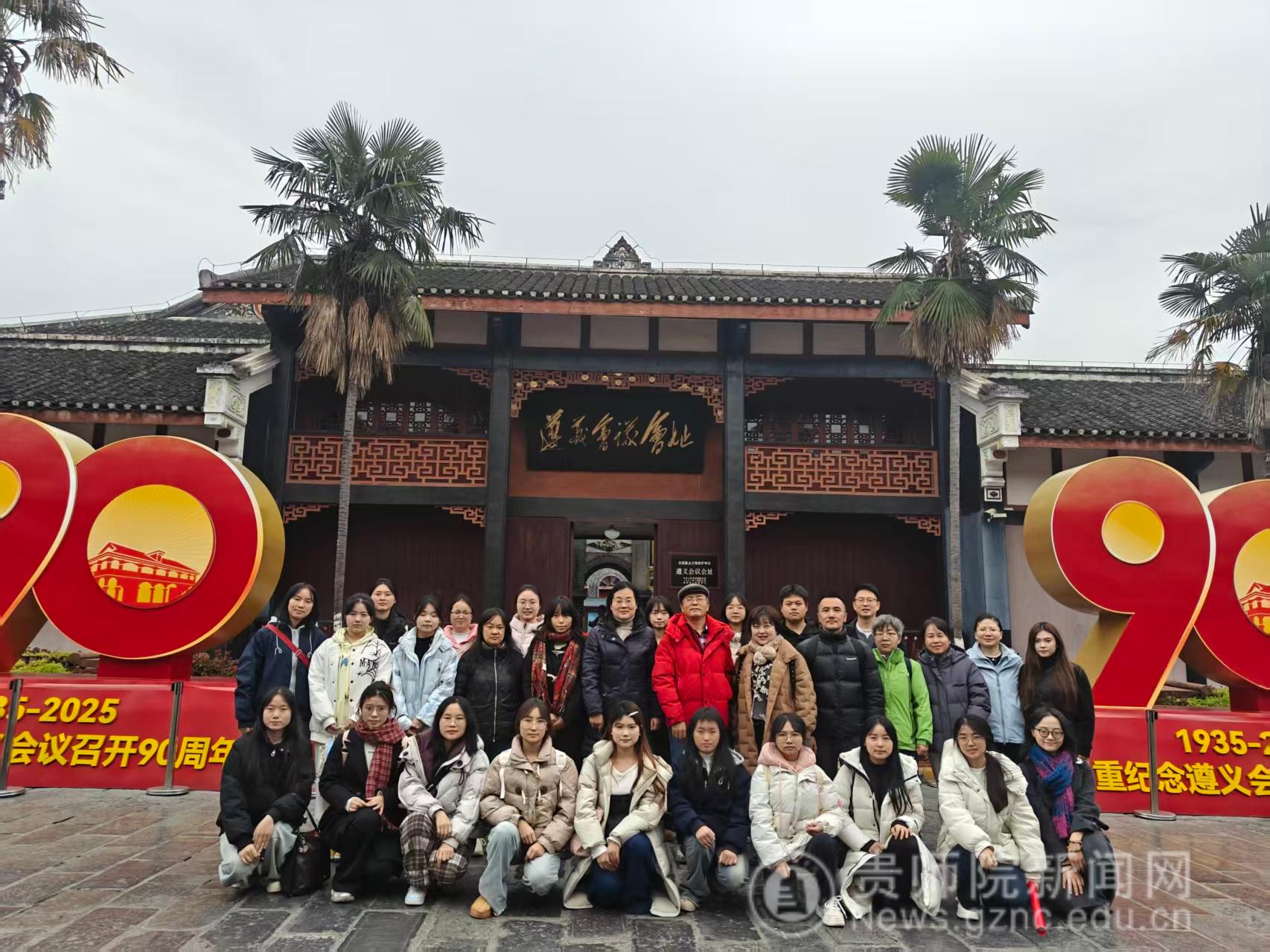 本网讯 为传承红色基因、筑牢初心使命,进一步增强教职工团队凝聚力与向心力,12月4日,贵州师范学院生物科学学院基层工会组织全体教师前往遵义会议会址,开展以“红色传承聚合力·党工共建忆初心”为主题的红色教育与团队建设活动。学院党委书记孙秀华、院长任翠娟、党委副书记王珏带队参与,全体教师共同在红色研学与互动协作中汲取精神力量、凝聚发展共识。