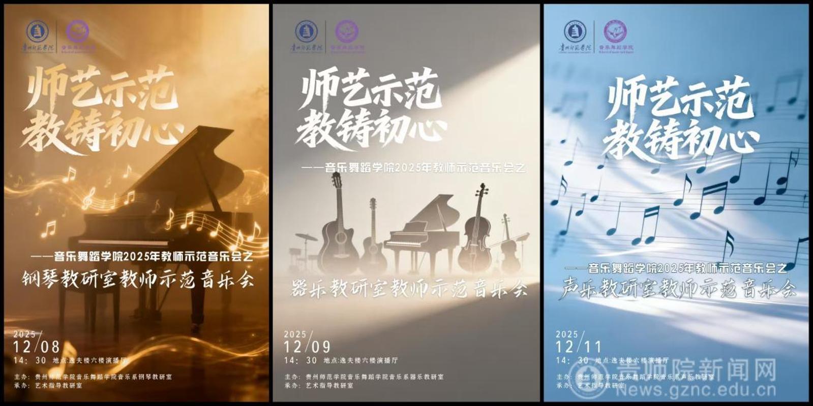本网讯 作为学院第四届教学节的重要活动,音乐舞蹈学院2025年度“师艺示范・教铸初心”系列教师示范音乐会于12月8日至11日在逸夫楼六楼表演厅成功举办。本次系列共呈现三场专场演出,紧扣“崇尚教学 树立中心”的教学节主题,生动践行“推进课堂教学革命,站稳立德树人讲台”的核心宗旨,以专业舞台实践呼应教学改革与育人初心。