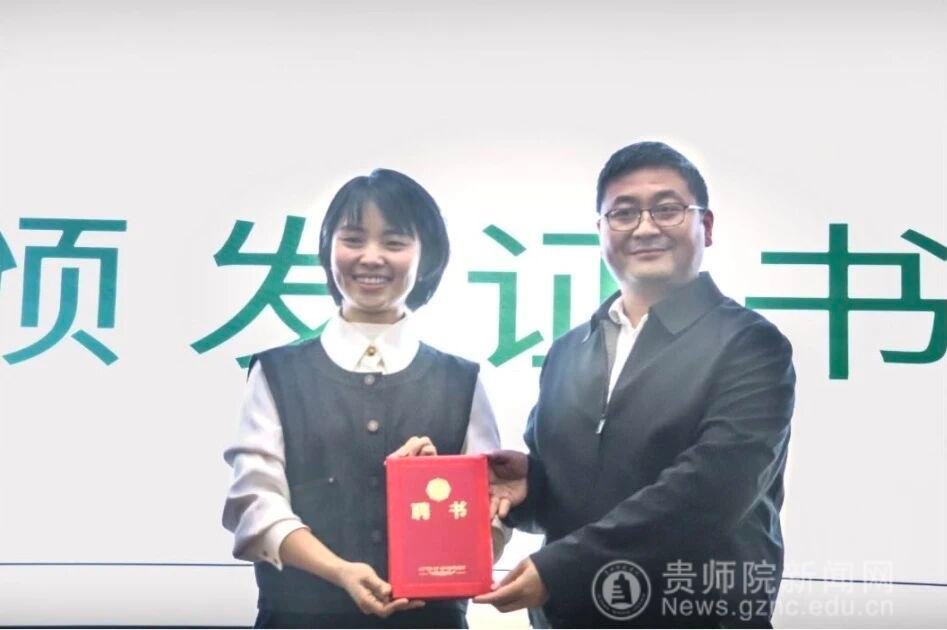 郝进欣为张婷颁发证书