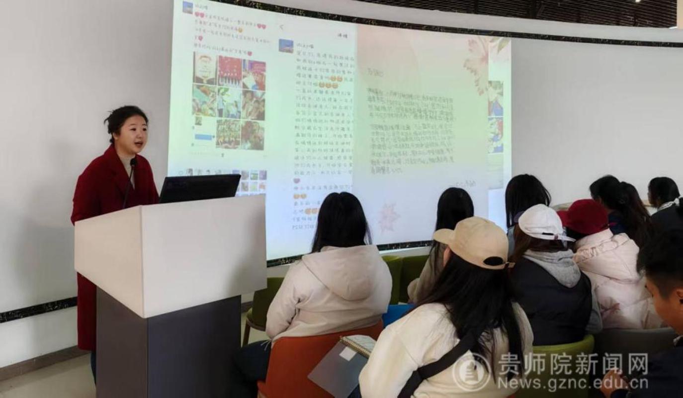 本网讯 为进一步强化师范生职业道德修养,筑牢教育初心,提升育人能力,近日,贵州师范学院美术与设计学院在教学实践周期间,特邀贵阳乐湾国际实验小学招办主任兼国际部副主任、拥有十五年基础教育教学经验的知名教育专家杨敏老师,在学院艺术工坊举办了一场题为“师德情怀、师德师风、班主任工作”的专题讲座。教师代表及美术系全体师范生共同聆听了此次讲座。