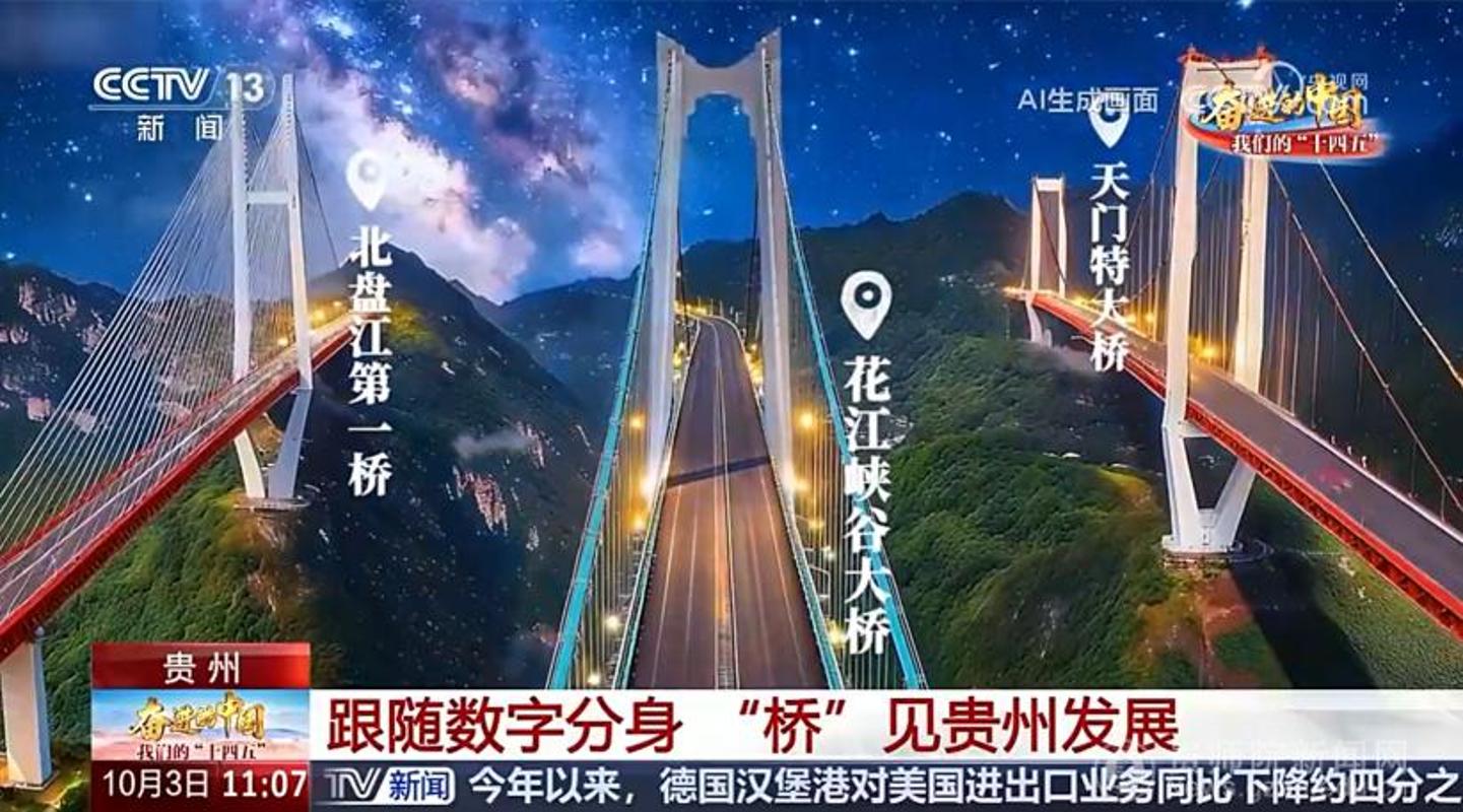 本网讯 继端午 AI 龙舟作品登陆 CCTV13 后,美术与设计学院『美视界』数字艺术工作室小沃团队再传捷报 —— 近期再度携手央视,打造两部聚焦贵州的精品视频,分别以 “花江峡谷大桥” 与 “‘十四五’贵州发展” 为主题,用科技与创意延续 “AI + 文化 / 发展” 的创作初心,让贵州故事再次闪耀国家级媒体平台!