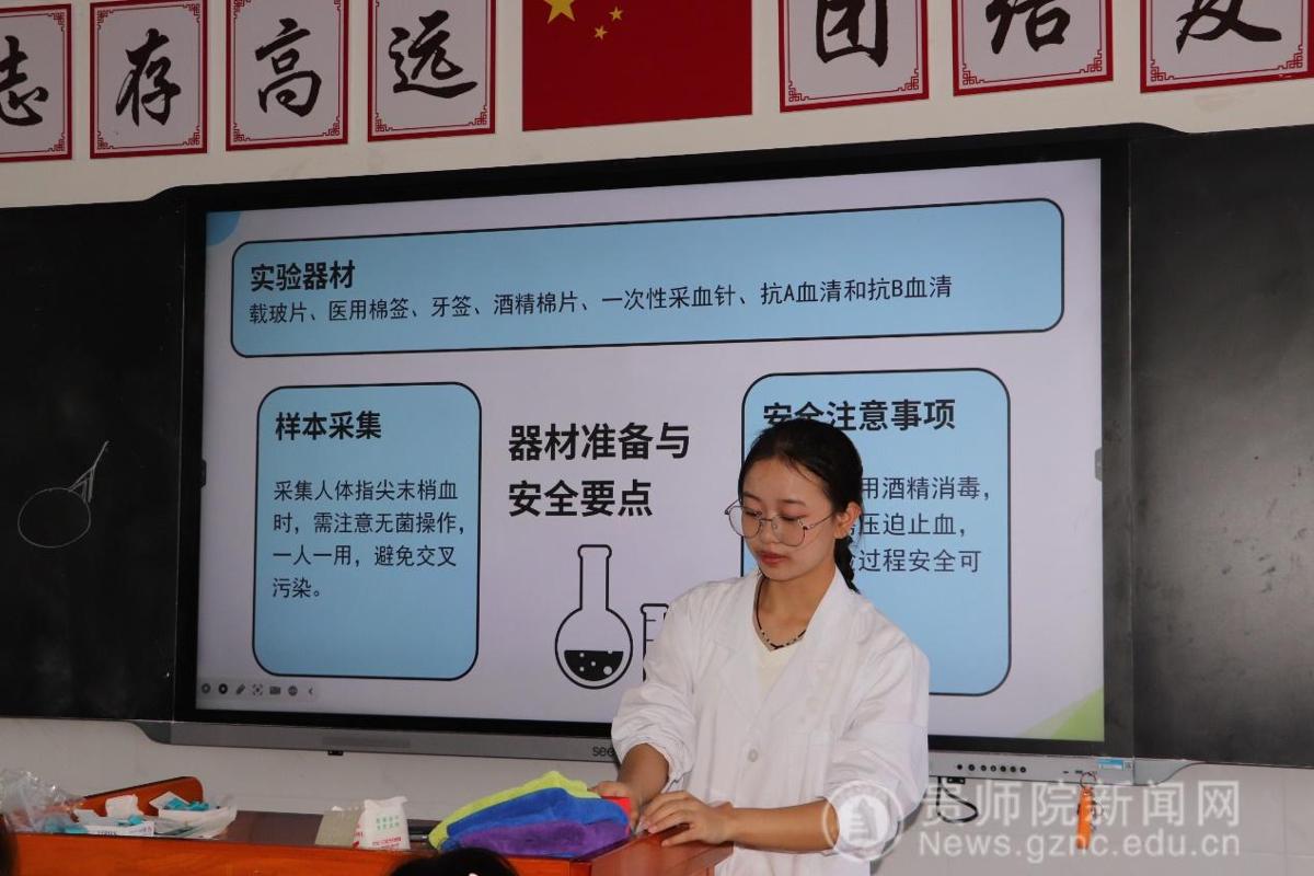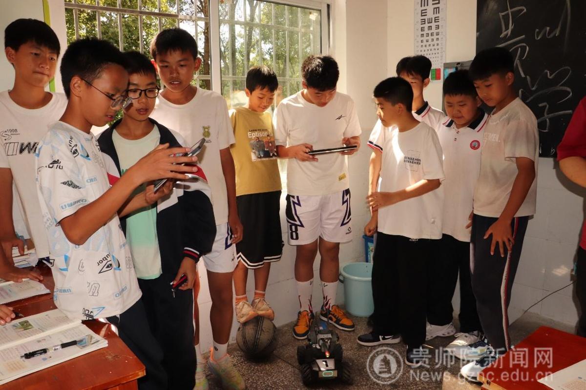 午后,队伍抵达楠木渡镇中学,开启“青年红色筑梦之旅”支教环节。师生按计划分为四组,结合专业开展特色课程:化学与生物小组以趣味实验,用生动现象激发孩子科学好奇心;智电创客志愿者搭建平台,操控机甲大师机器人完成移动、越障等动作,灵活机械臂与流畅轨迹点燃现场;音乐素养小组借歌声与乐器,为孩子打开艺术之门;女童保护知识普及小组通过互动讲解,助力女生提升自我保护意识。