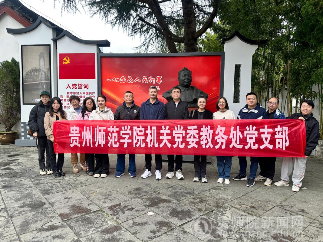 本网讯 为深入学习贯彻党的二十大和二十届历次全会精神,强化党员理想信念教育,2025年10月31日,机关党委教务处党支部组织全体党员赴安顺市王若飞故居开展“传承红色基因、赓续革命精神”主题党日活动,通过重温革命历史、感悟先辈精神,进一步强化党员的初心使命意识。大家认真参观了故居内的文献资料、历史图片和实物展品,详细了解王若飞同志从青年求学、投身革命到为民族解放事业英勇奋斗的光辉一生,引导党员深刻感悟革命精神,筑牢思想根基。