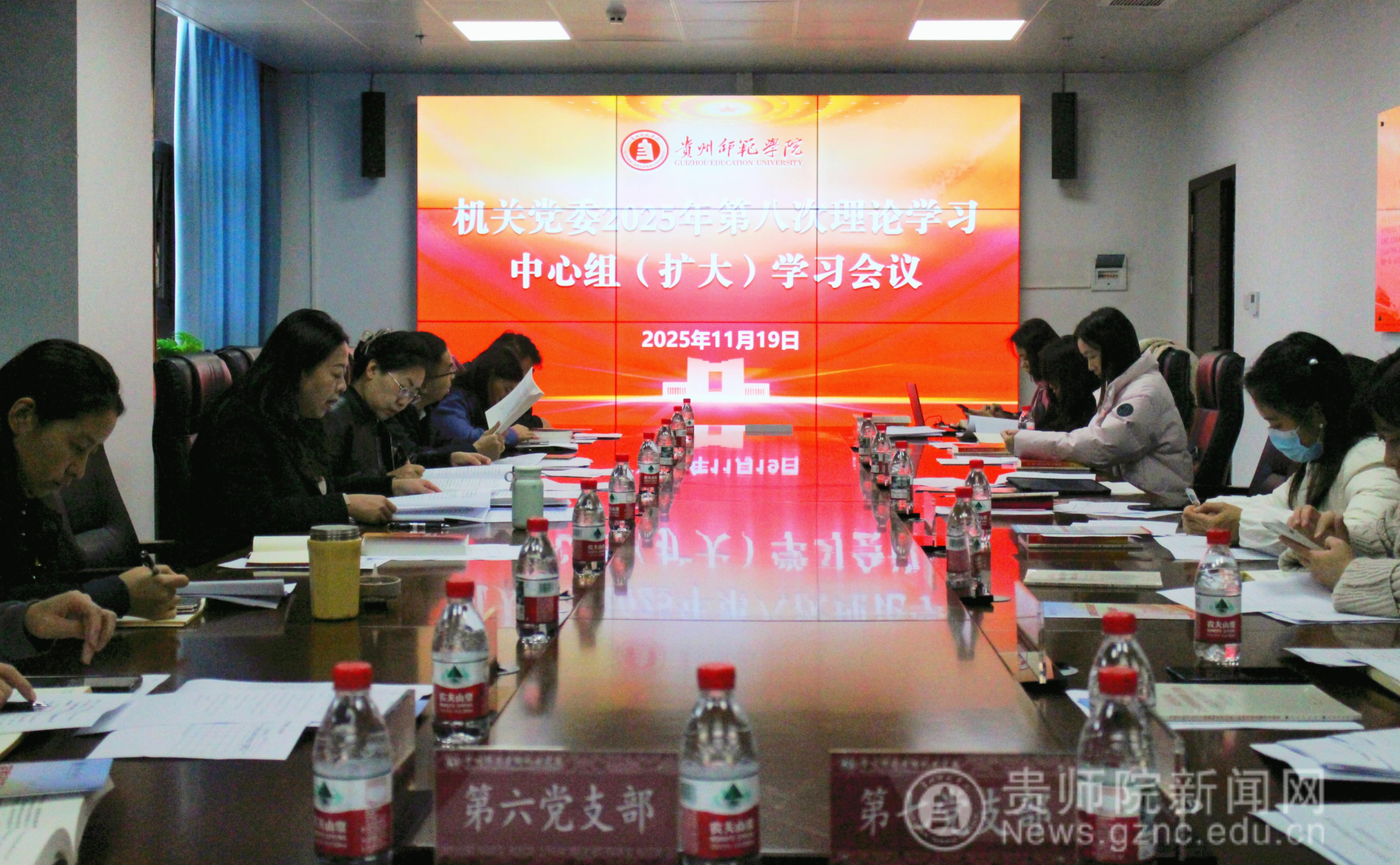 本网讯 为深入学习贯彻党的二十届四中全会精神,切实把思想和行动统一到全会决策部署上来,不断推动机关党建工作高质量发展,11月19日上午,机关党委以“深入学习贯彻党的二十届四中全会精神,将学习成效转化为推动机关党建高质量发展的实际行动”为主题,在信息楼506会议室召开第八次理论学习中心组(扩大)学习会议。党委中心组成员参加会议,各党支部书记列席。会议由机关党委书记张瑶主持。