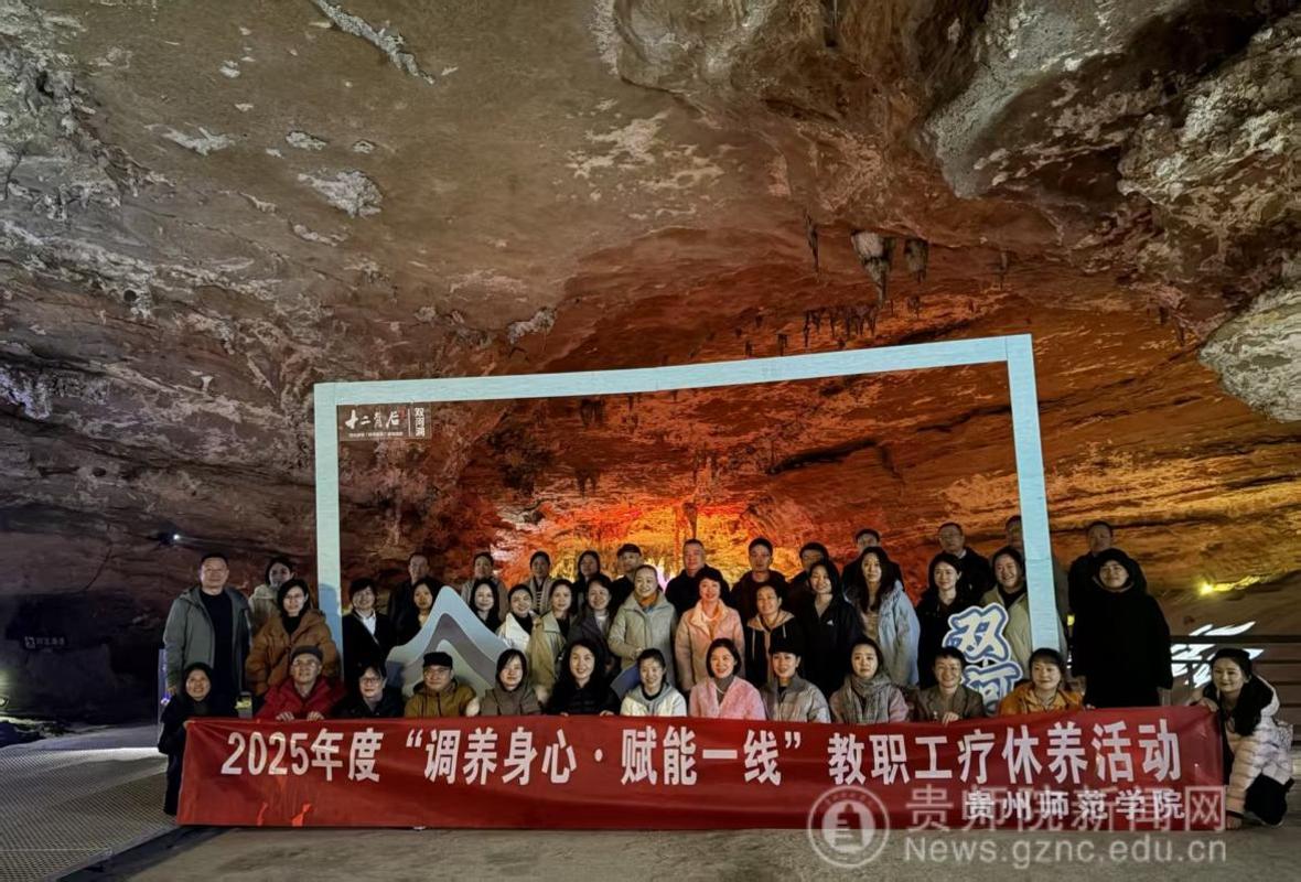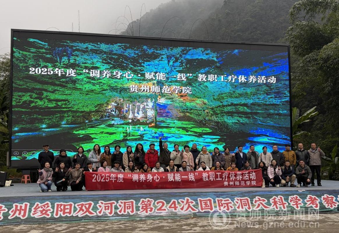 为切实关爱教职工身心健康,激励先进典型,营造崇尚劳动、关爱一线的良好氛围,贵州师范学院工会于12月10日-12日组织开展了2025年度“调养身心,赋能一线”教职工疗休养活动。本次活动面向学校教学、科研、管理服务岗位上的劳模、先进工作者及一线教职工代表,旨在通过丰富的休养安排,为大家舒缓压力、充电赋能。活动期间,教职工们入住环境清幽的遵义绥阳双河疗休养基地,体验了一段融合自然疗愈、团队互动与文化熏陶的惬意时光。